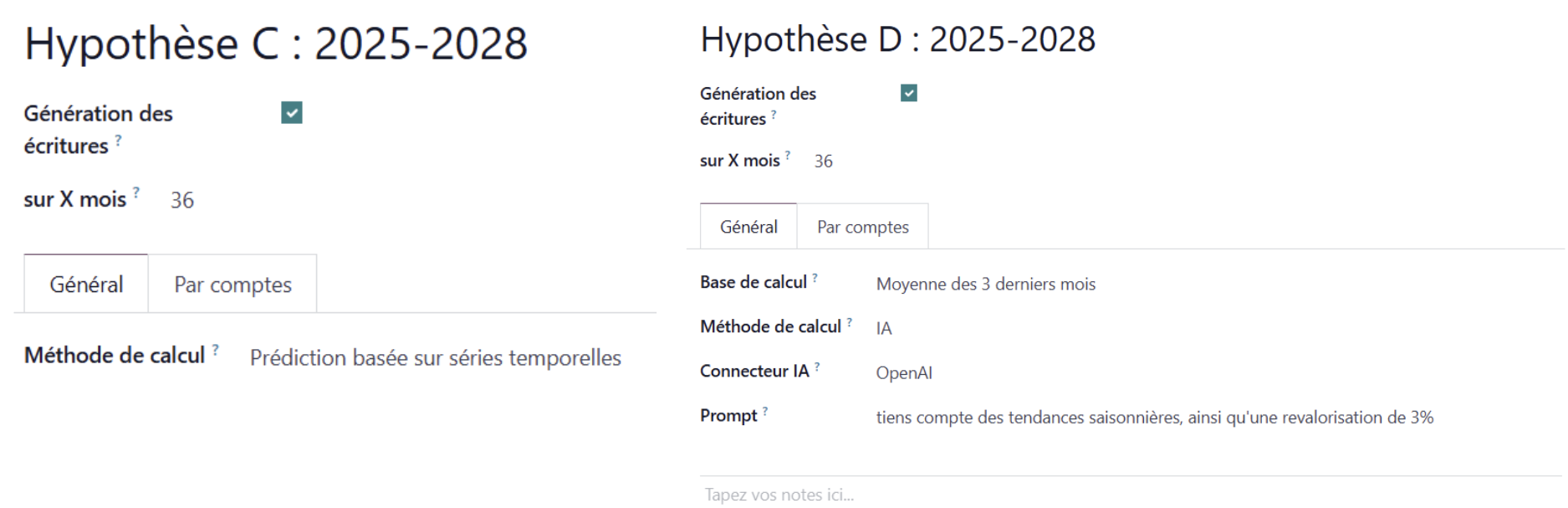 - Modèle IA ajustable par prompt pour affiner les projections.